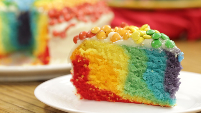 Adicione corante aos poucos e pare quando atingir a cor desejada — utilizamos corantes vermelho, laranja, amarelo, verde, azul e roxo.