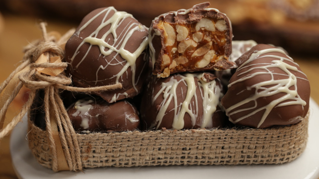 No micro-ondas, derreta o chocolate meio amargo — faça-o de 10 em 10 segundos, até que fique líquido.