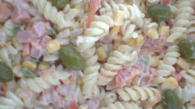 Misture a cebola com os outros ingredientes e adicione o sal, a maionese a gosto, o cheiro verde (opcional) e o macarrão e mexa bem até misturar tudo.