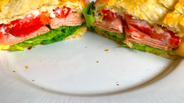 Em uma frigideira, derreta o queijo mussarela e coloque no sanduíche.