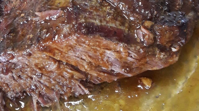 De vez em quando, abra o forno e vá regando a carne com o caldo que se forma, pois assim você garante uma carne mais úmida.