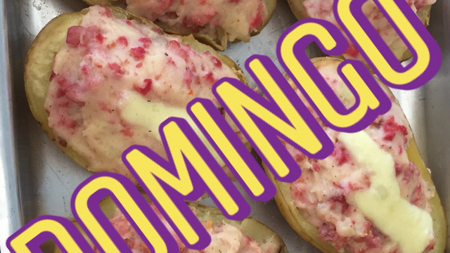 Adicione o recheio até sair para fora da batata.
