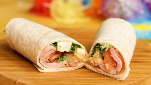 Abra o pão folha e coloque 3 - 4 fatias de peito de peru.
