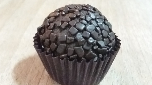 Enrolar e passe no chocolate meio amargo granulado.