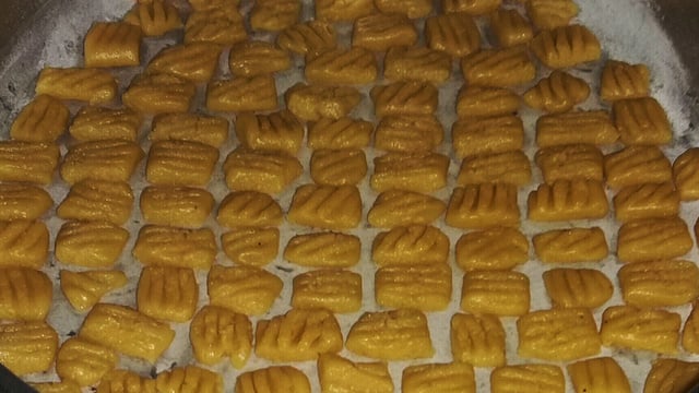 Faça um rolete em forma de cobrinha com cada bola e corte em pedacinhos de 2 cm de espessura.