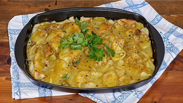Parece delicioso. Mas não seria mais fácil cozinhar as batatas descascadas e já em rodelas?