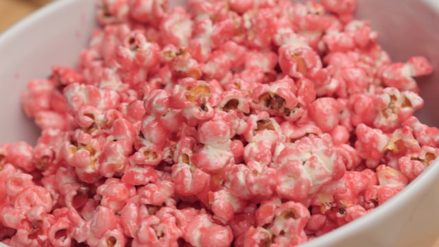 Incorpore bem e despeje sobre a pipoca já estourada, com a ajuda de uma espátula.