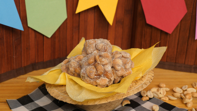 Em uma panela, acrescente a manteiga, o amendoim, o açúcare a água.