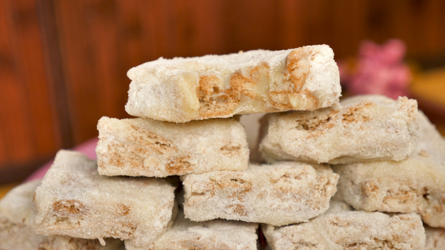 Corte o doce em cubos do tamanho que preferir e passe-os em leite em pó para finalizar.