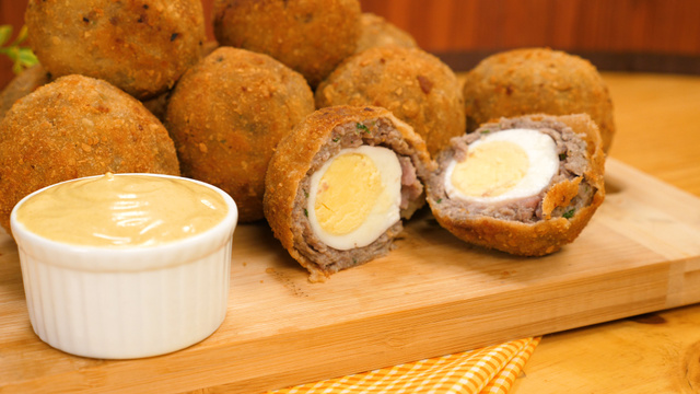 Empane passando na farinha trigo, depois nos ovos batidos e por último na faruinha de rosca.