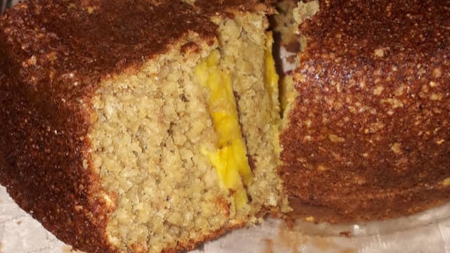 Bata os ovos com a banana no liquidificador até formar uma massa cremosa.