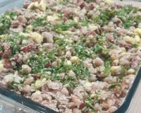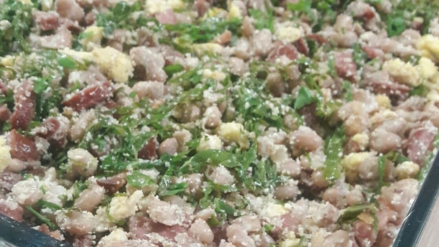 Acrescente o feijão e todo os outros ingredientes em um refratário.
