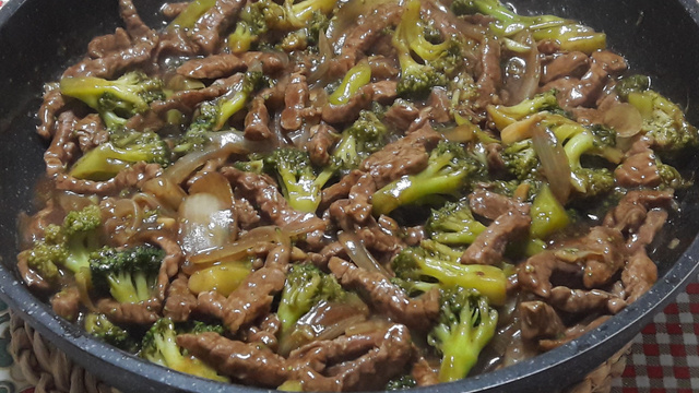 Junte o brócolis e a mistura de shoyu, água e amido.