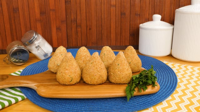 Coloque as coxinhas em uma forma e leve ao forno preaquecido (180° C) por cerca de 35 minutos.
