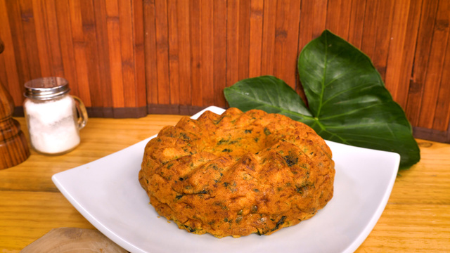 Em uma frigideira, aqueça 1 fio de azeite e refogue a taioba picada, reserve.