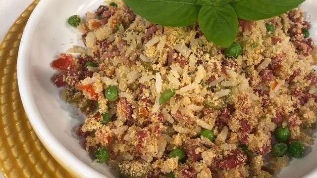 Lembre de colocar bastante azeite para que a farofa fique úmida.