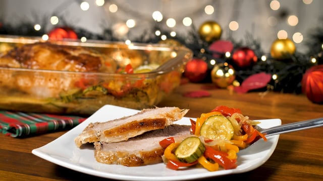 Coloque o pernil numa assadeira e faça cortes diagonais na gordura.