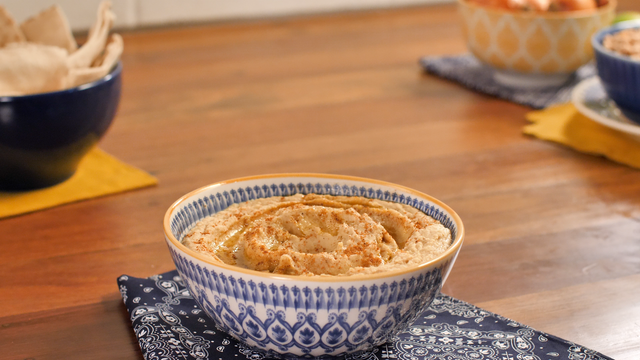 Coloque um fio de azeite de oliva e sirva com pão sírio ou árabe.