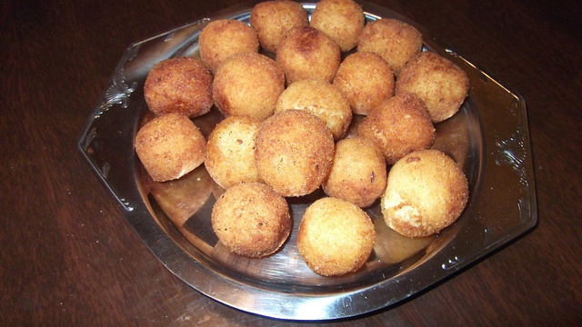A receita tem ao todo 884.74 kcal. Utilizar na receita a batata Asterix, que é mais seca, se esfarela quando cozida, tem a casca meio roxa. Não dá certo com batatas comuns.