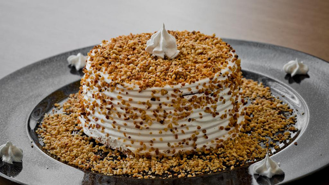 Corte a torta em três partes, uma coloque o creme, outra o crocante, o suspiro e cubra com chantilly, deixando em cima aberto e cubrindo com fio de ovos ou decore a gosto.