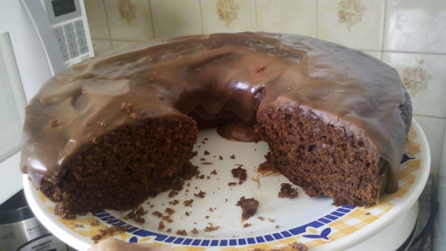 Misture bem todos os sólidos (açúcar, chocolate em pó, farinha de trigo, fermento e sal)