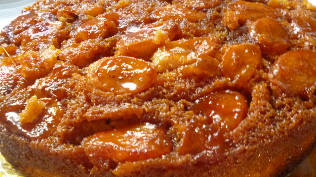 Despeje a massa sobre as bananas com o caramelo na forma.