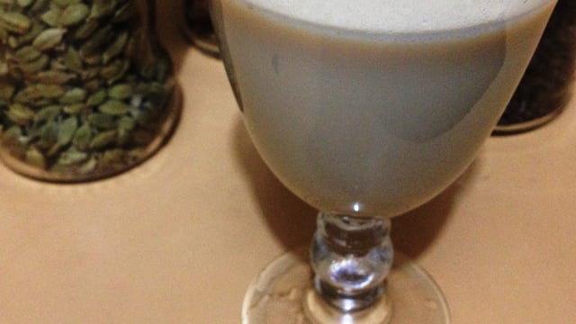 Aquecer em fogo baixo a água com todos os ingredientes, exceto o açúcar, o leite e o chá preto.