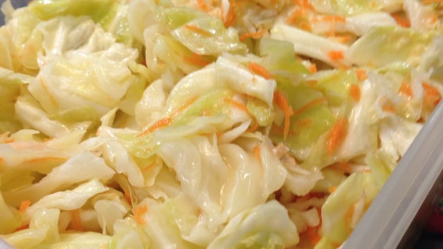 Obs.: pode - se acrescentar uma cenoura cortada em fiapos após todo o preparo. Esta salada dura até uma semana na geladeira, basta escorrer o líquido que junta antes de servir.