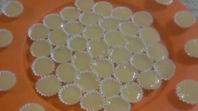 Espete um cravo em cada bolinha e coloque em forminhas de papel.