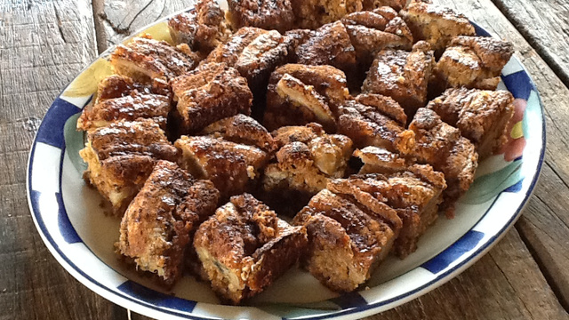Adicione as tiras de banana sobre essa massa e salpique com canela.