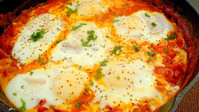Tampe a panela, abaixe o fogo e deixe que os ovos cozinhem no molho.