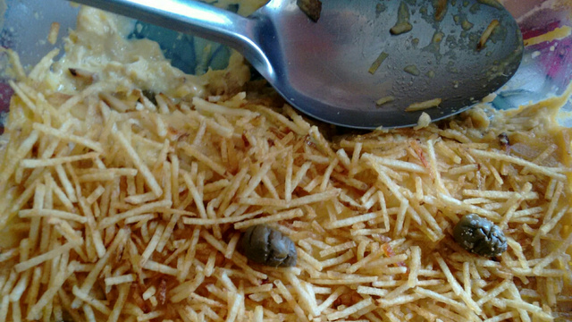 Com uma colher, acrescente em cima do frango que está no pirex.