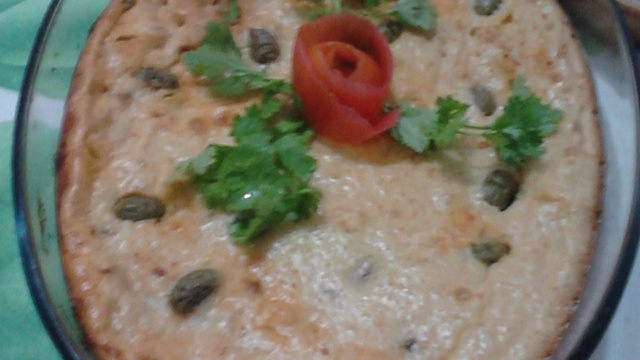 Molhas as rodelas no leite e coloque em uma assadeira redonda.