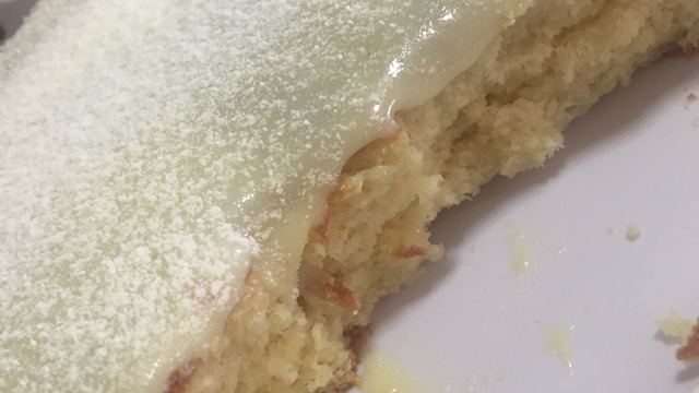 Coloque ainda quente encima do bolo.