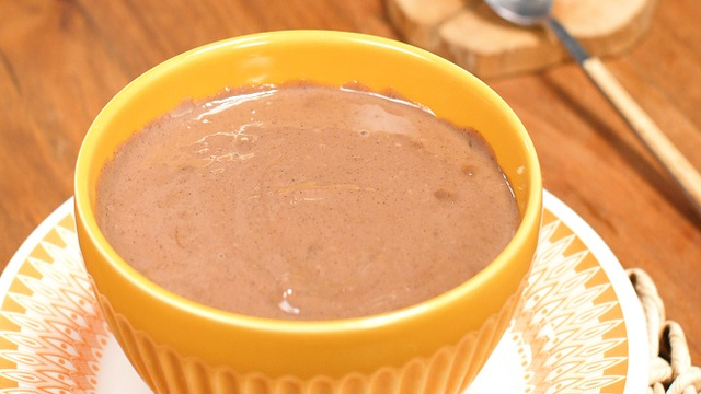 Em uma panela, coloque o leite, o leite condensado, a manteiga, o amido de milho, o chocolate em pó, o cacau e mexa até engrossar.