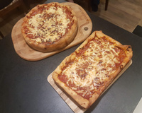 Em uma bancada abrir a massa da pizza até formar uma folha de 5 mm de espessura.