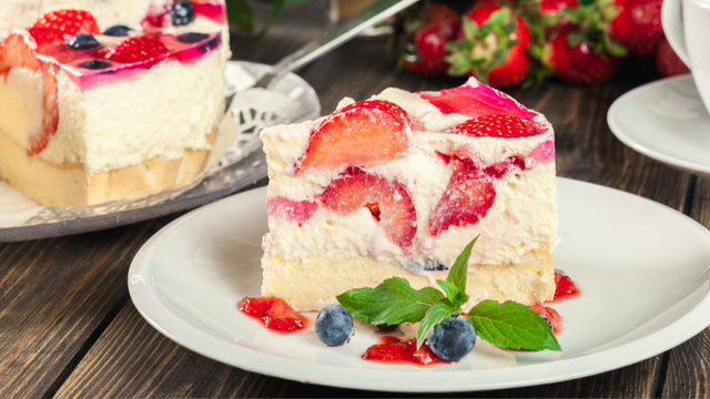 Depois que esfriar, misture os morangos picados e aplique no bolo.