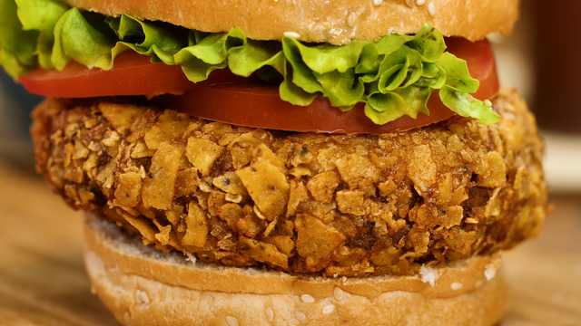 Passe os hambúrgueres no doritos triturados.