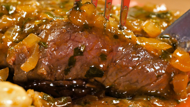 Em uma frigideira, aqueça a manteiga e frite o bife dos dois lados.