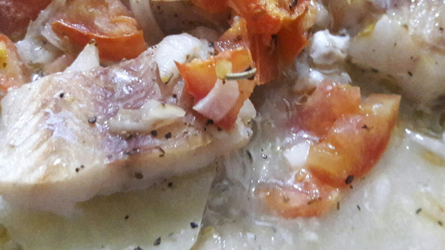Leve ao fogo em 270° por aproximadamente 40 minutos (até o peixe assar e a água secar)