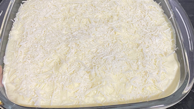 Por último, acrescente o coco ralado por cima do pavê