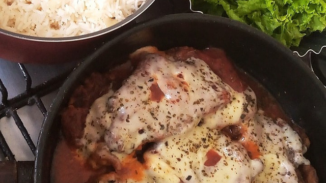 Feito isso acrescente o restante do molho, coloque umas pitadas de sal, em cima a mussarela (pode ser em fatias ou ralada) e por fim o orégano