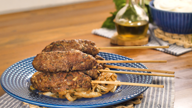 Misture tudo muito bem, divida em 5 porções e modele as kaftas.