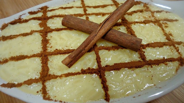 Quando o arroz doce estiver pronto, retire o pau de canela e a casca do limão e sirva polvilhado com canela em pó, de preferência enquanto estiver quente.