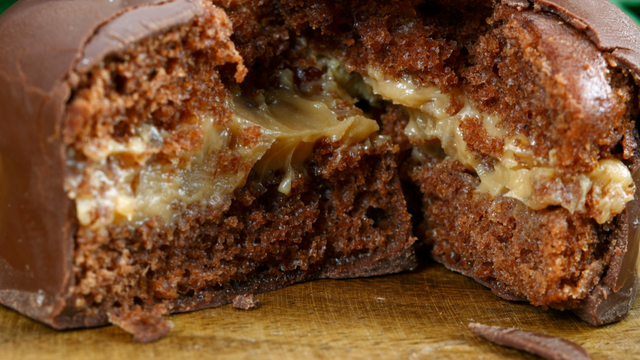 Depois de assada, espalhar o chocolate picado por cima do bolo quente.
