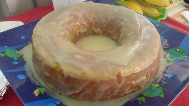 Despeje sobre o bolo ainda quente.