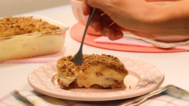 Finalize com o biscoito triturado e leve à geladeira até gelar.
