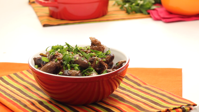 Em um recipiente, junte o coração e os primeiros 6 temperos
