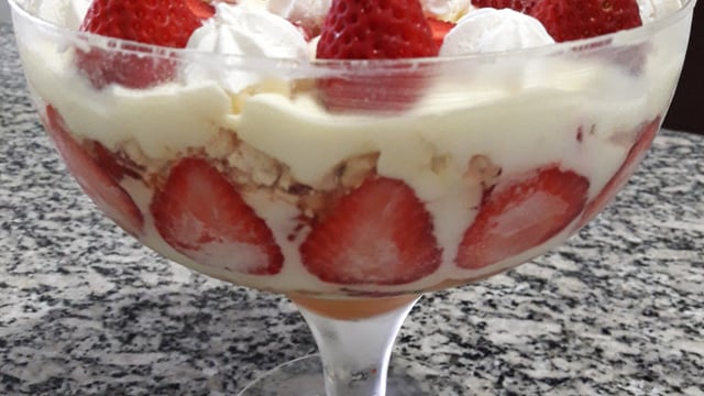 Em um refratário coloque uma camada de morango e uma camada de suspiro.