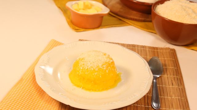 Desenforme em um prato e finalize com mais coco ralado